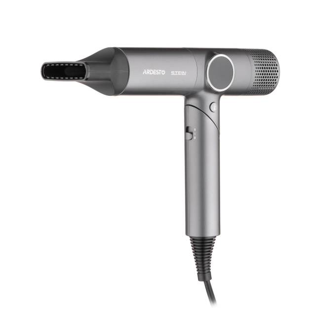 В фене Ardesto Stein HD-Y1000ST сочетается мощность 1600 Вт и удобство. Устройство оснащено высокопроизводительным DC-двигателем 11 0000 об/мин, LED-дисплеем для контроля режимов, складной рукояткой для компактного хранения, функцией ионизации для блеска волос. Предусмотрены 2 скорости, 4 температурных режима, защита от перегрева, а также съемные насадки-концентратор и диффузор. Благодаря эргономичному дизайну, он является наилучшим решением для домашнего и профессионального использования.