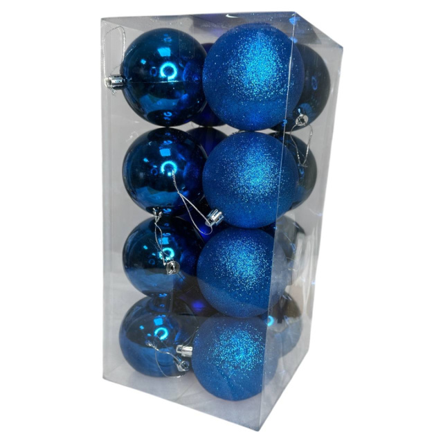 Набор игрушек на елку K68-31 19461 8 см 16 шт синий